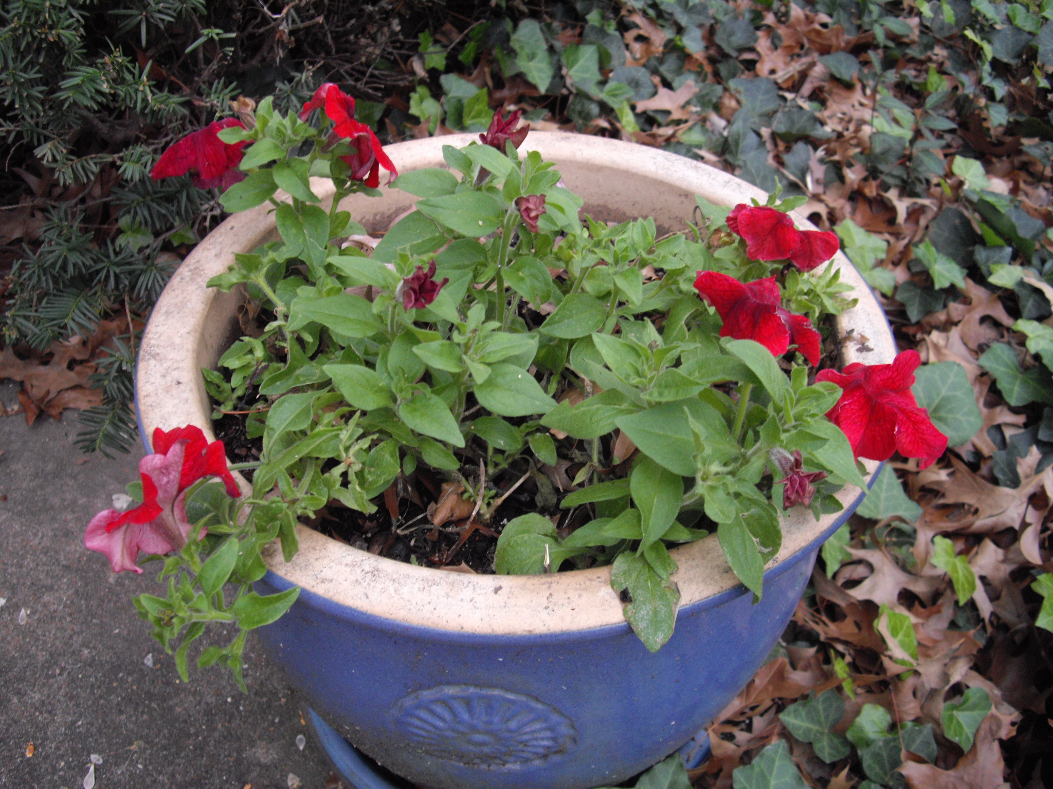 Clearly, Christmas is just around the corner. Meanwhile, the petunias are still hanging in there.