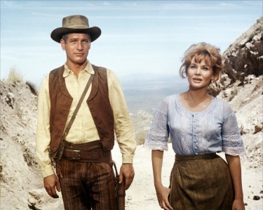 I think my second favorite Paul Newman movie has to be “Hombre” — and again, Newman brings so much more to quiet cool than Eastwood ever did. If you haven’t seen this movie lately (or at all), watch it, it’s great. After I saw it as a kid, I went around trying to walk quietly like an Apache for days (I hope no one realized that at the time!). Here he is with co-star Diane Cilento (who recently passed away) in what has to be her best role.