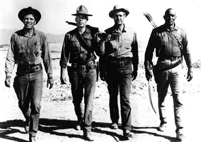 In Bless the Beasts and the Children, Glendon Swartout writes about a group of misfit boys who steal out of summer camp on horseback to see The Professionals. They love it too, for “this is the marrowbone of every American adventure story: some men with guns, going somewhere, to do something dangerous. Whether it be to scout a continent in a covered wagon, to weld the Union in a screaming Wilderness, to save the world for democracy, to vault seas and rip up jungles by the roots and sow our seed and flag and spirit, this has ever been the essence of our melodrama: some men with guns, going somewhere, to do something dangerous.”