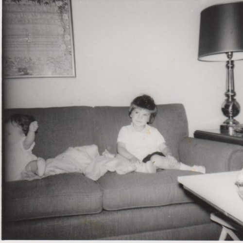 In answer to yesterday’s question (in the comments): why wasn’t your sister there bothering you? She was right there at the end of the sofa, practicing her cheer routine.