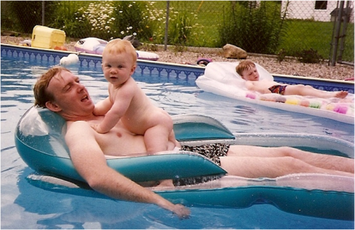 But let’s not forget the boys! Here’s a slightly risqué pic of my middle son enjoying a trip to the pool in his birthday suit. The quintessential fat baby…