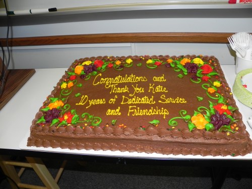 Earlier in the week my students surprised me with a party celebrating my 10 years at my flyover university. I was completely taken by surprise, which considering there were nearly 700 people keeping the secret, is pretty amazing. They gave me a lovely corsage, flowers and a very large cake (which quickly disappeared).