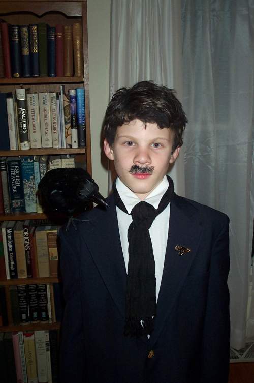Sometimes we went literary. Meet Edgar Allan Poe with his very own raven and black cat. The mustache is a little Charlie Chaplin but the cravat works.