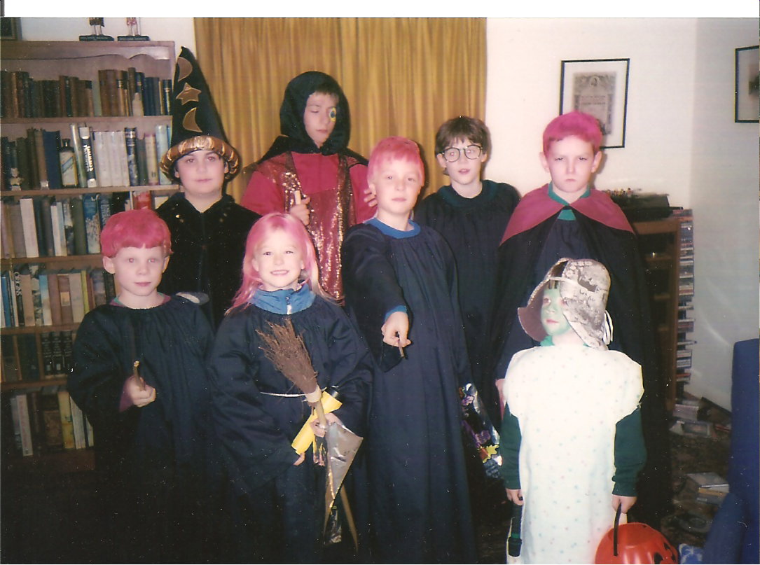 Sometimes friends who lived out of the village would come in to trick-or-treat and the children agreed on a theme. There was a Star Wars year and a Lord of the Rings year and once everyone went as a Harry Potter character.