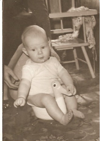 Dear me! The things parents take pictures of. And potty-training at 6 months–Good grief. I know our mother was somewhat smug about her having potty-trained us at 2 years! Maybe we were younger. Whatever.