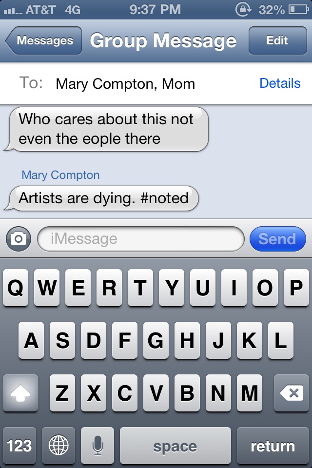 The highlight for me was “drunk-texting” with daughter #1 and daughter #2–although I was drinking ginger ale and no one was actually drunk.