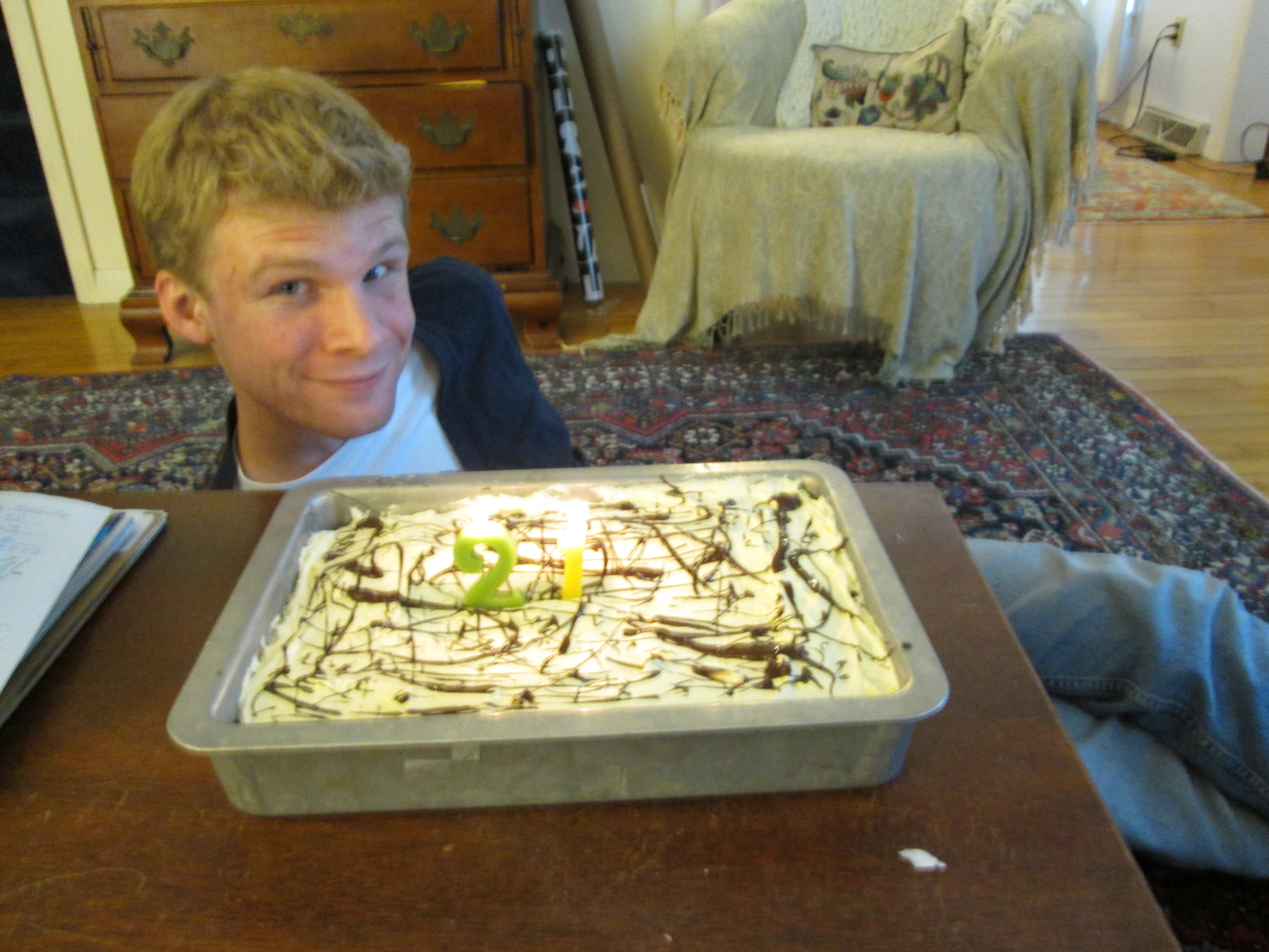 Number 2 son turned 21 on Thursday this week, the day after his cousin Mary’s birthday. We celebrated by taking him to dinner at our wonderful local restaurant, the 1844 House. And, of course, I made him “Sarah’s special cake” too.