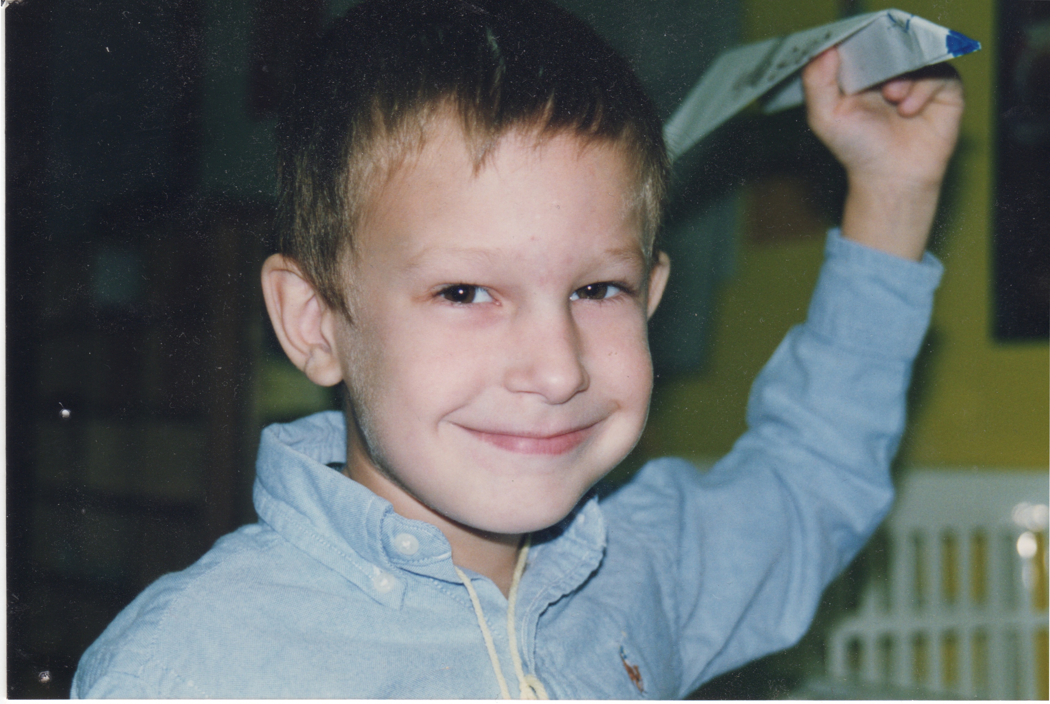 The above photo is one of my favorite pictures of the boy. He is about four. Funnily enough, it was taken by one of his Sunday School teachers. He is in the act of throwing an accurately decorated paper (jet) plane. Hmmm.