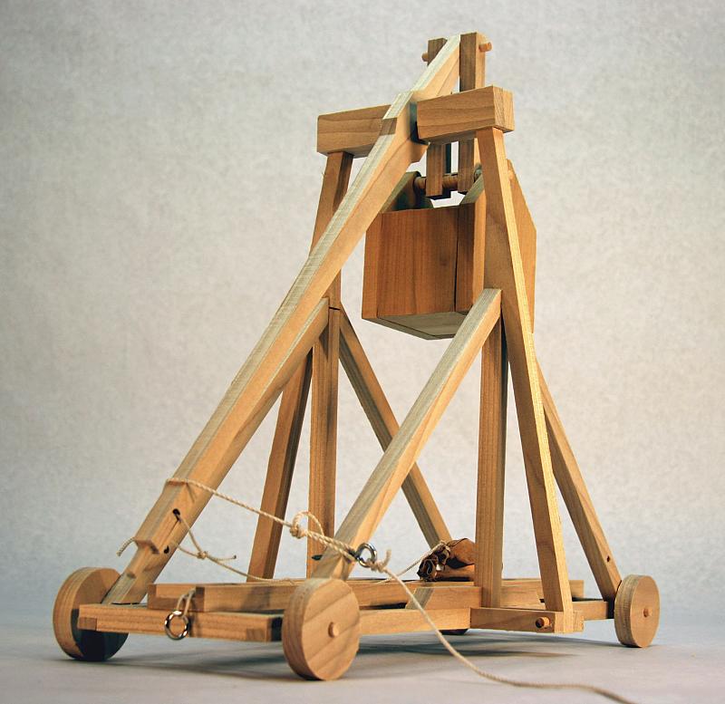 We had so much fun! I showed them some cuneiform tablets, some potsherds, Greek arrowheads, chain mail gauntlets (made by a student) and other wonders. We investigated different writing systems and learned a few words of Latin. Then we shot marbles across my office with a model trebuchet kind of like this: