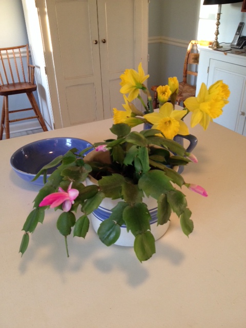 At home I am keeping my spirits up with these pretty flowers–and, yes, the Christmas Cactus is blooming again.