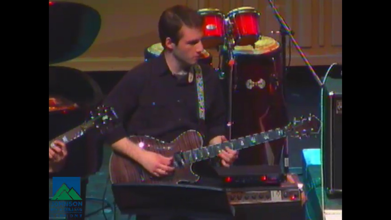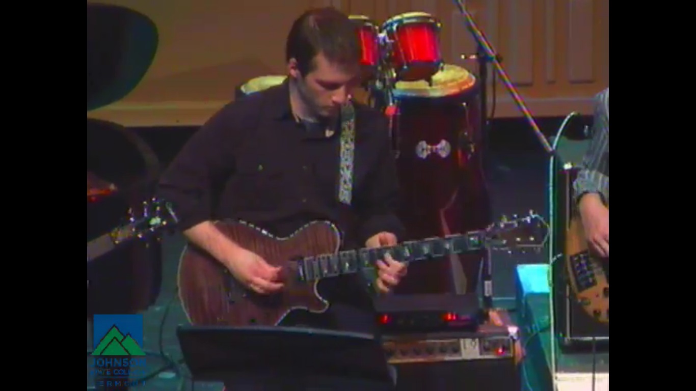 Well, it’s true that I’m no techno wizard. I have a cell phone but almost never use it. I can text, but don’t like to and I have no desire to learn to tweet, instagram, snapchat or perform any of those other trendy activities (at least I’ve heard of them). I am not really anti-technology. Just this week, thanks to my dear husband’s computer savvy and a cool little device he bought for Christmas, we watched son #3’s end of year concert live from Vermont on our TV. The quality wasn’t great, but we still got to see him perform in all three music ensembles (jazz, guitar, and ‘funk fusion’). Not only that, but the husband took photos throughout by hitting “screen capture” on his computer. How cool is that? Here are a couple choice pics taken while Tim played solo and the camera was on him: