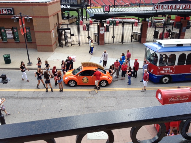 You could see into Busch Stadium from our vantage point, but the Cardinals were away Friday night.