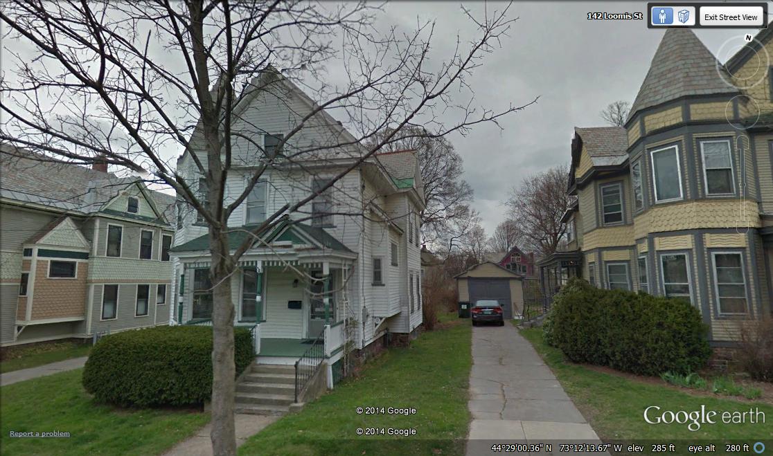 I promised my dual personality that I would post the latest family history update today. It’s not earth-shattering or particularly romantic, but it does help to fill the blanks just a little bit. Today’s post concentrates on a collateral branch of the Cameron side of the family. Specifically, we take a look at my grandfather’s sister, Hazel Stuart Cameron, who (along with her two older siblings) was born in Clarence, Ontario before the family moved to Burlington VT in 1899 or 1900. After a few years living in various Burlington abodes, the Camerons bought a brand new (built in 1899), four bedroom, 2,082 sq ft. house at 140 Loomis St. Here it is today via Google Street view.