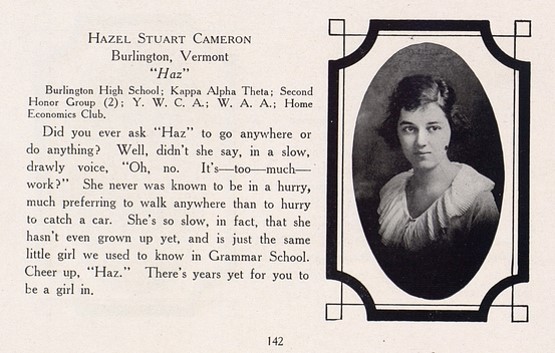 Hazel attended UVM. She doesn’t appear to have been as involved on campus as great aunt Carly and great uncle Guy were, but she did pledge to a sorority