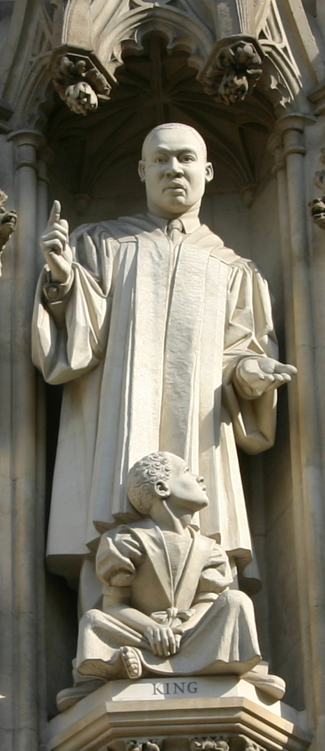 Martin Luther King, Jr. statue over the west entrance of Westminster Abbey, installed in 1998.