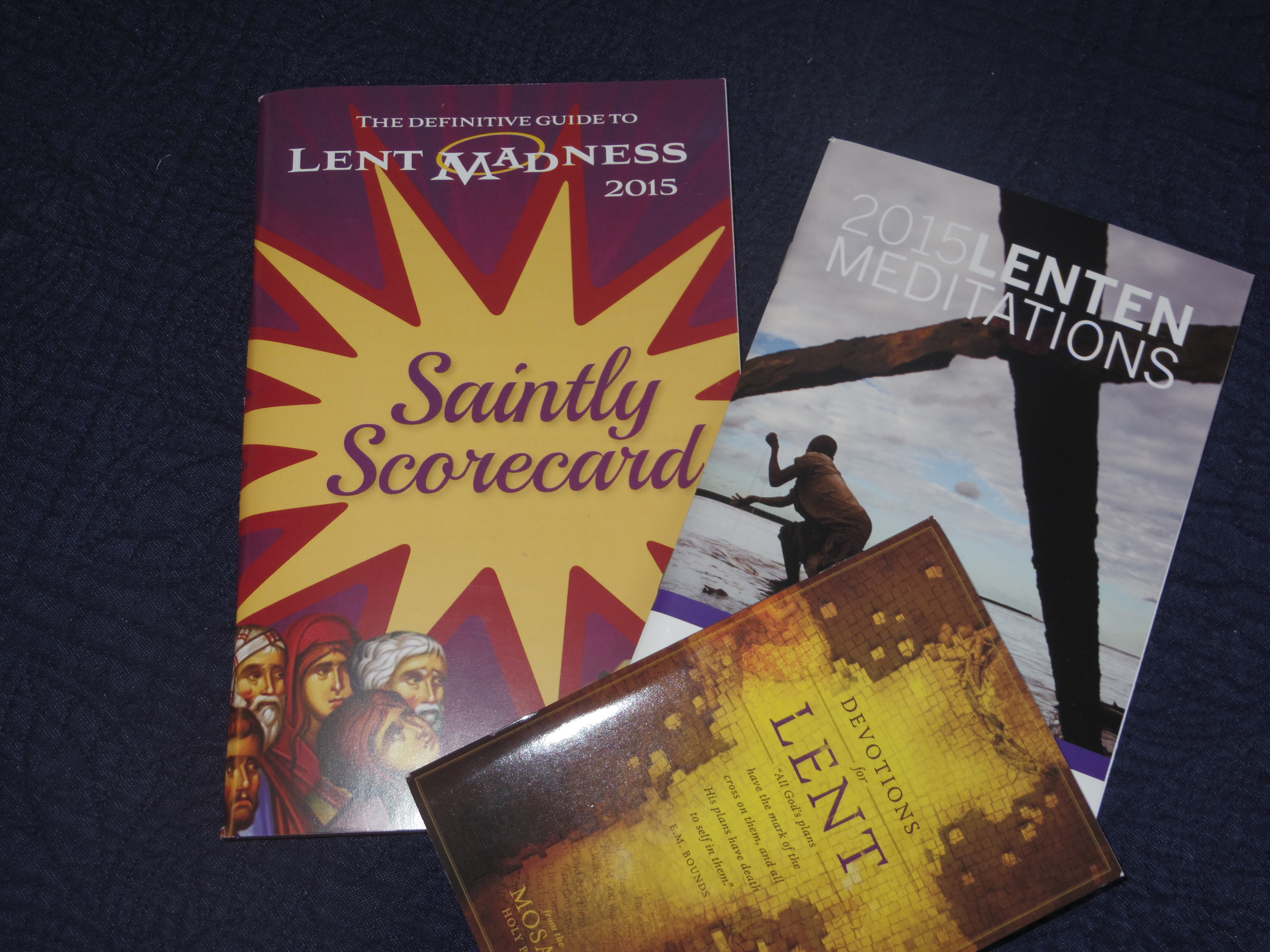 Many lenten pamphlets were available, so I took them all. The “Saintly Scorecard” is for hip Episcopalians who “learn from those who came before us as faithful witnesses to the gospel” while having fun just like the ungodly who bet on basketball during “March Madness.” You pick a bracket and all that jazz. No thanks. (I do not make this stuff up.)
