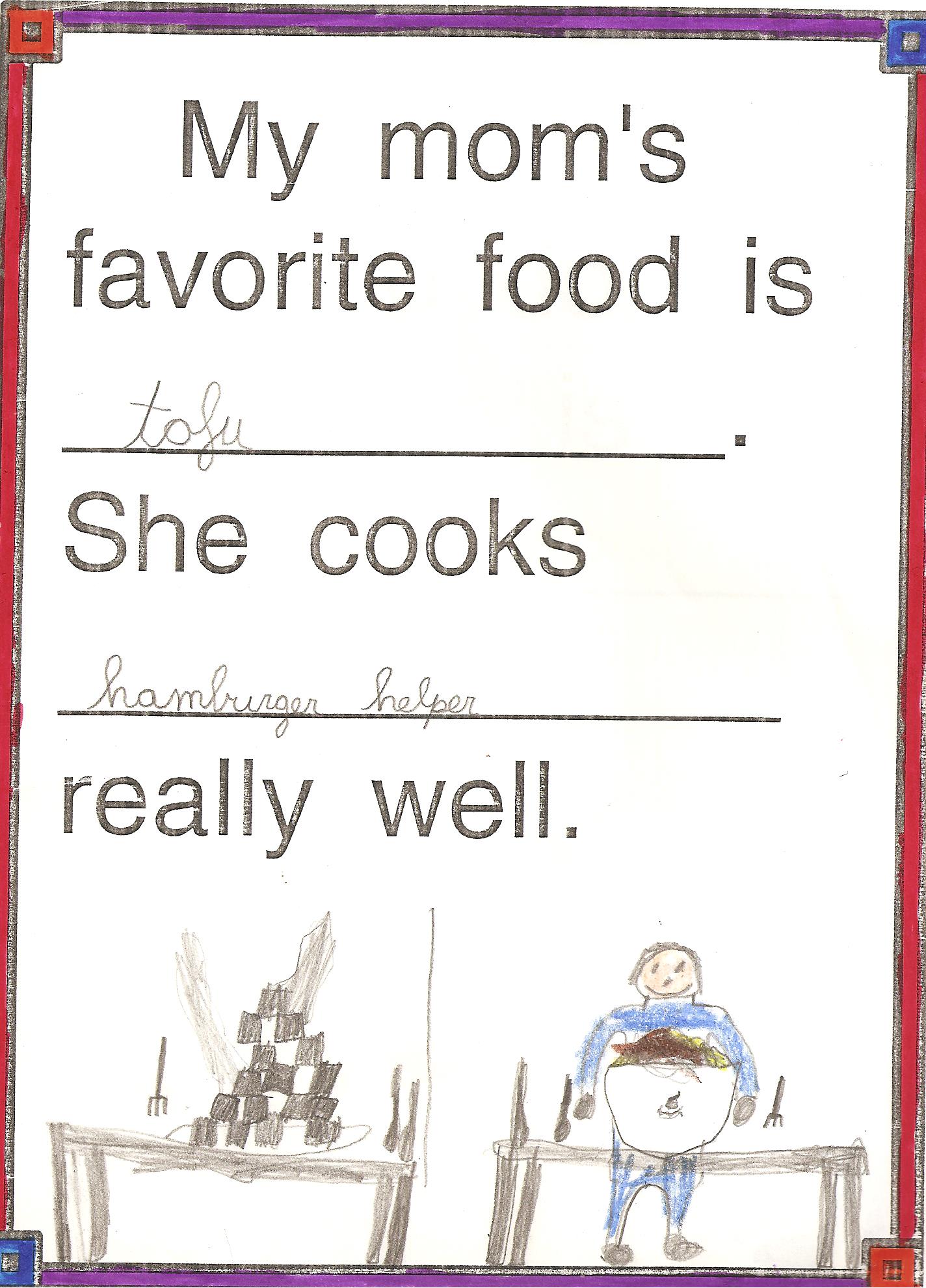 By (roughly) 2nd grade, Tim’s drawing had improved, but his food commentary was still just as baffling.