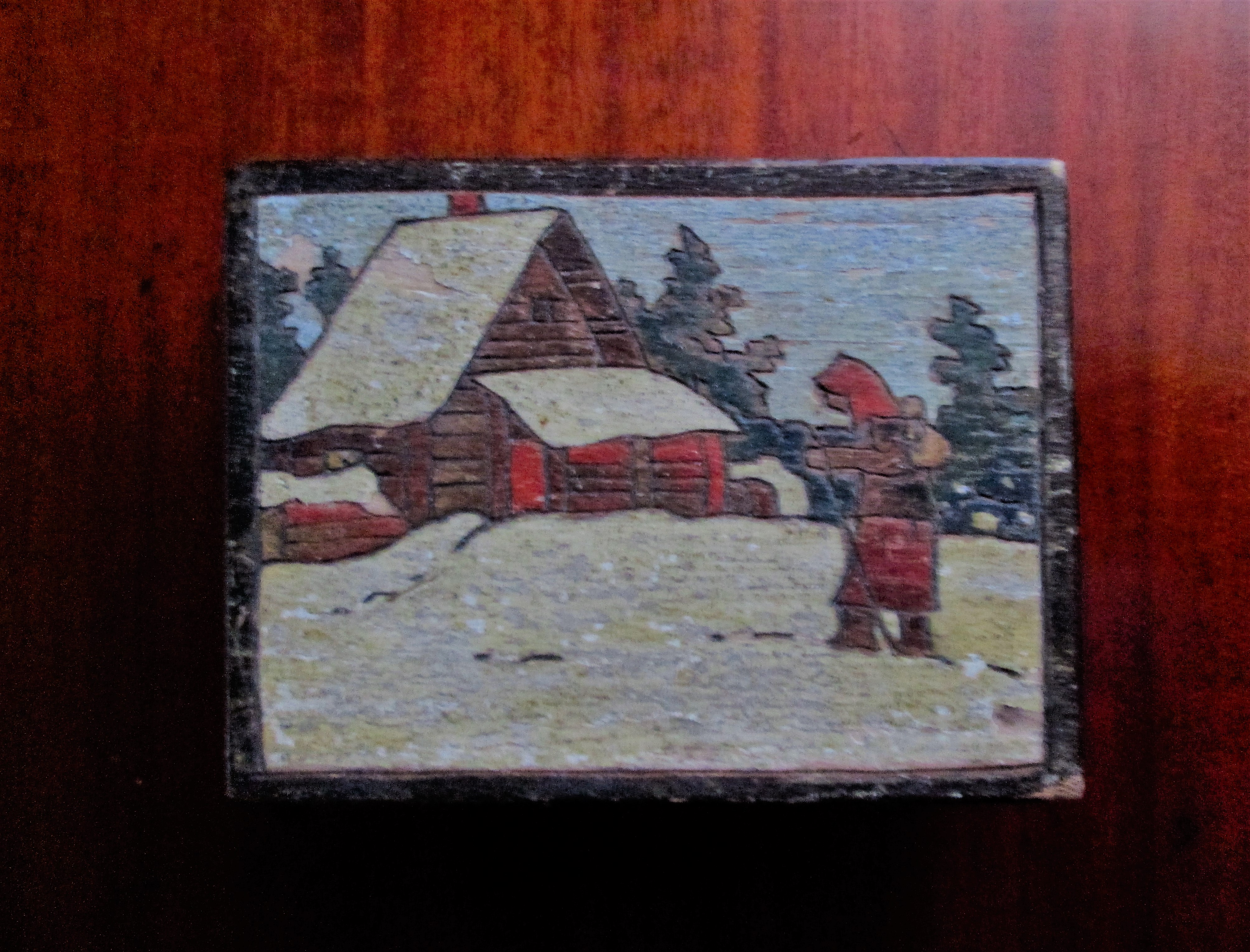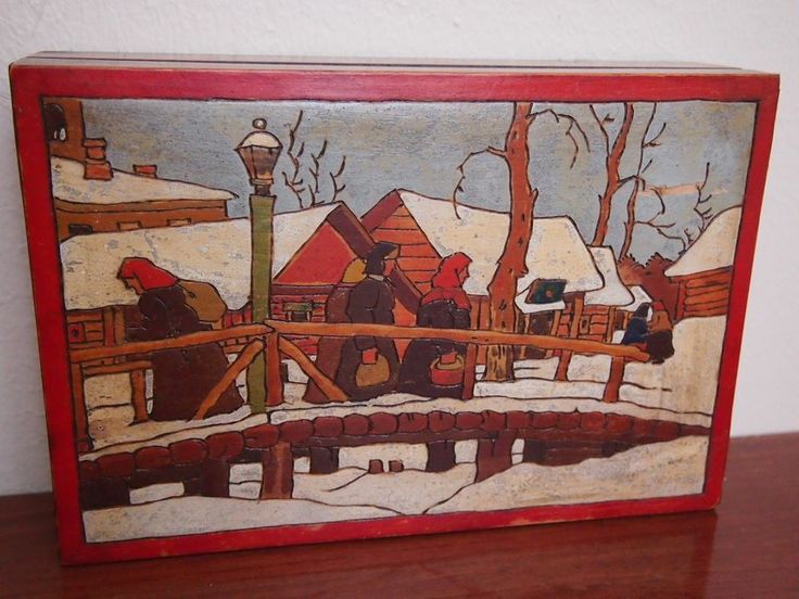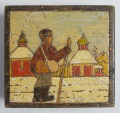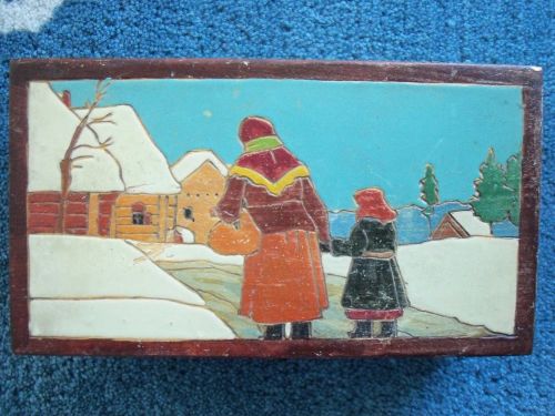Until recently all my efforts to determine its origins have failed, but I think I’ve finally figured it out. I believe that it was made by White Russian émigrés to Europe after the Bolshevik Revolution. It certainly compares better to Russian trinket boxes than anything else I’ve seen. Note the overall folk-art style, the simple subject matter,