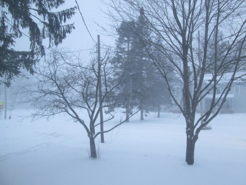 On Tuesday and Wednesday this week we got the blizzard that the weather people mistakenly forecast for NYC. All three of my sons — spread out though they are from DC to Syracuse to northern Vermont — enjoyed days off. Almost everything up here shut down: all the schools, both state universities and most state-run organizations closed; the mail went undelivered, and the garbage uncollected. By contrast, the DH and I received multiple emails reminding us that classes at our universities had NOT been cancelled. Oh, well. What’s 20 plus inches of snow or instructions from the state police to stay home? The show must go on…
