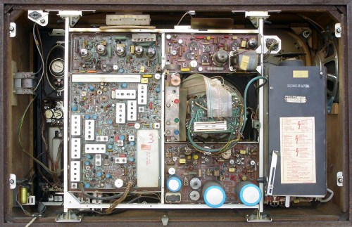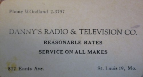 Periodically, when one of those little glass tubes needed replacing, some fuse blew, or one of the more delicate knobs required fine tuning, we called Danny, the owner of the business card shown above. He would come right away and fix the machine.