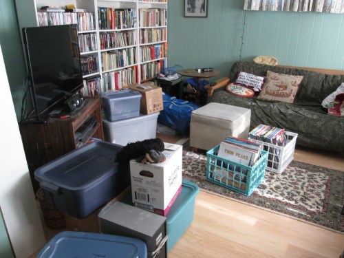 It’s very reasonably priced, brand new, and very well organized. Into this lovely space son #2 and I moved the first of many loads of detritus that threaten to overwhelm my house. We have an attic, but some things need climate control, and it gets really cold up there.