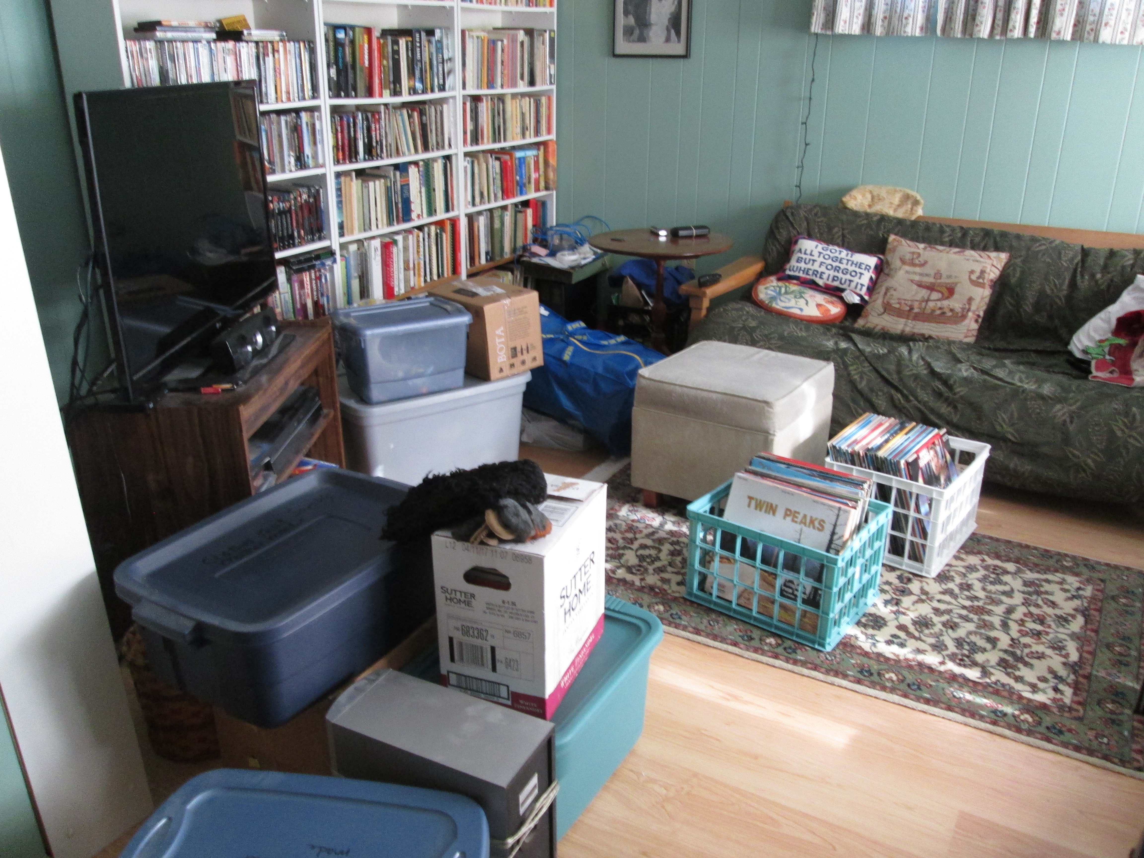 Children’s books, son #2’s collection of laser discs (don’t ask), stuffed animals, son #1’s kitchen stuff, various amplifiers and speakers belonging to son #3, our record collection, and additional odds and ends. I can’t tell you what a difference it makes. You can see the floor in Tim’s closet! And the family room no longer looks like garage band heaven. I feel renewed!
