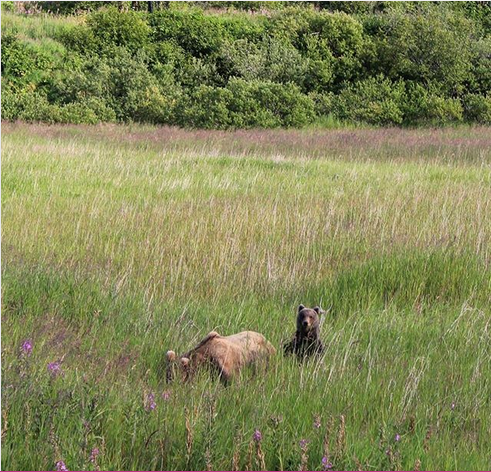 On Saturday I reported that son #2 made it to Kodiak Island. Since then he’s explored the area and had his first bear sighting, a mother and her cub!