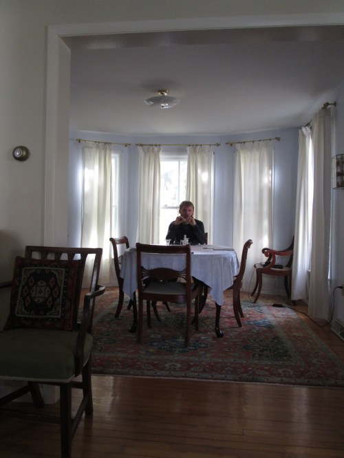 The angle is a little odd because I was trying to avoid my son as he lunched in the dining room, but then I took this picture, and I like the lighting, so here he is.