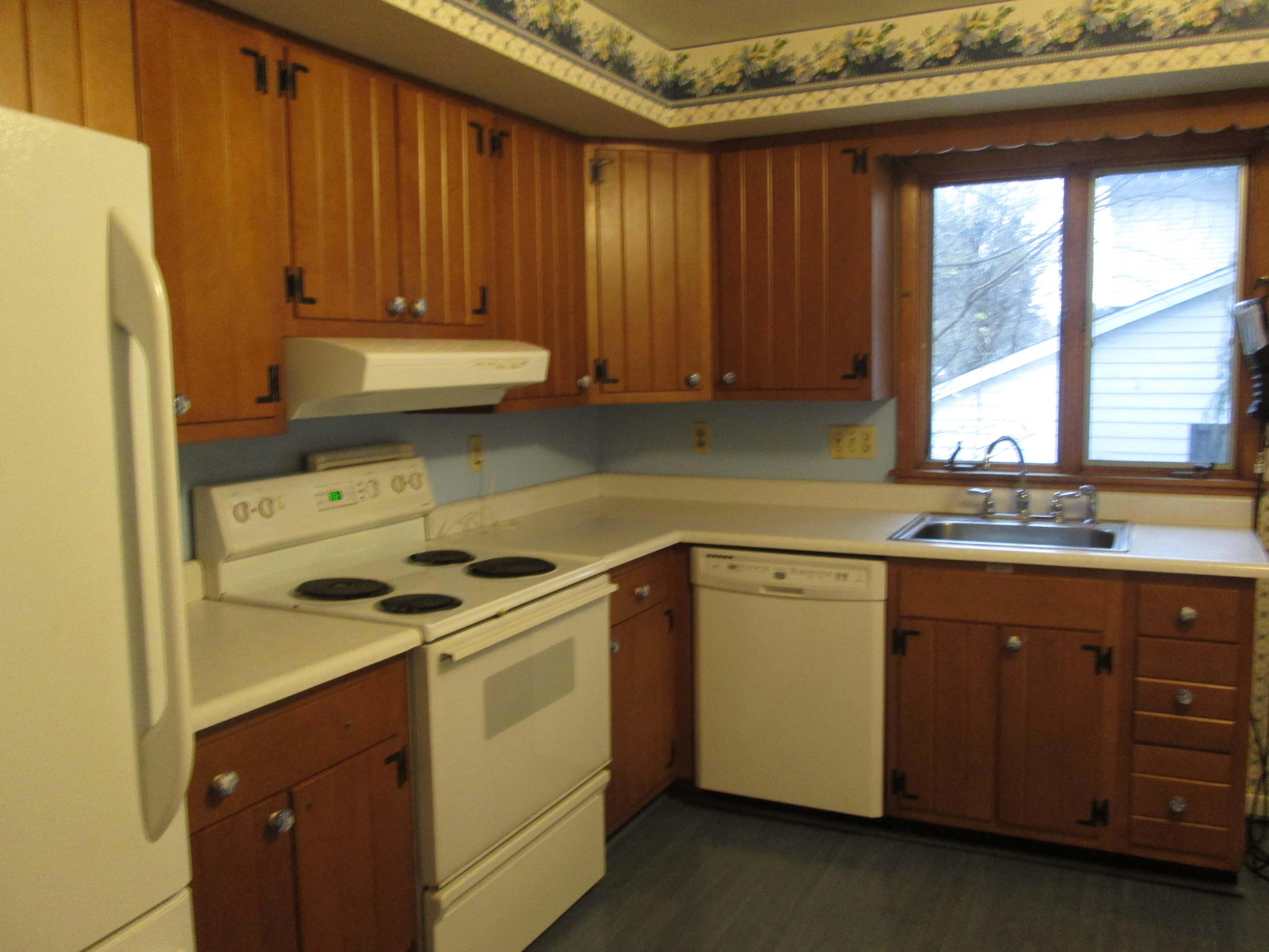 Now the kitchen is to be white. Not a cold, antiseptic hospital white. A little warmer, but still, not to suggest any other color but white.*