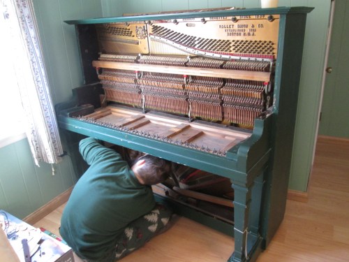 Well, that Christmas came and went in a hectic blur. We had loads of fun despite the unfinished kitchen: all the travel went well; church put us in the Christmas spirit; the cards on our presents included difficult riddles and crossword puzzles; there was plenty of music, and masses of food. We had long skype/facetime/phone conversations with son #2, and we even (mostly) dismantled the old piano preparatory to have it removed.