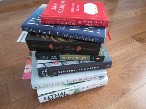 I took a break from the wonderful, long Kristin Lavransdatter to read Lethal White, the newest volume in Robert Galbraith’s (aka J.K. Rowling’s) Cormoran Strike series. I enjoyed it; the author has maintained her characters well and the plotting was tight, if a little too elaborate. If you’re looking for meaning, you’d be much better off with Sigrid Undset. I’ve dipped into both the Pagels and Karon books and look forward to reading more, and although I’ve already read the Amor Towles books, they are so great that I needed to own them. I love receiving books at Christmas, don’t you?
