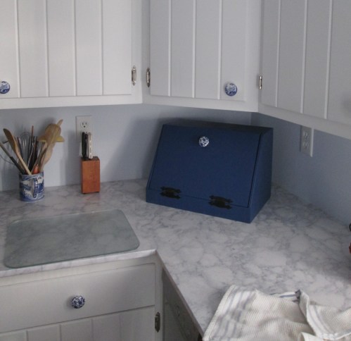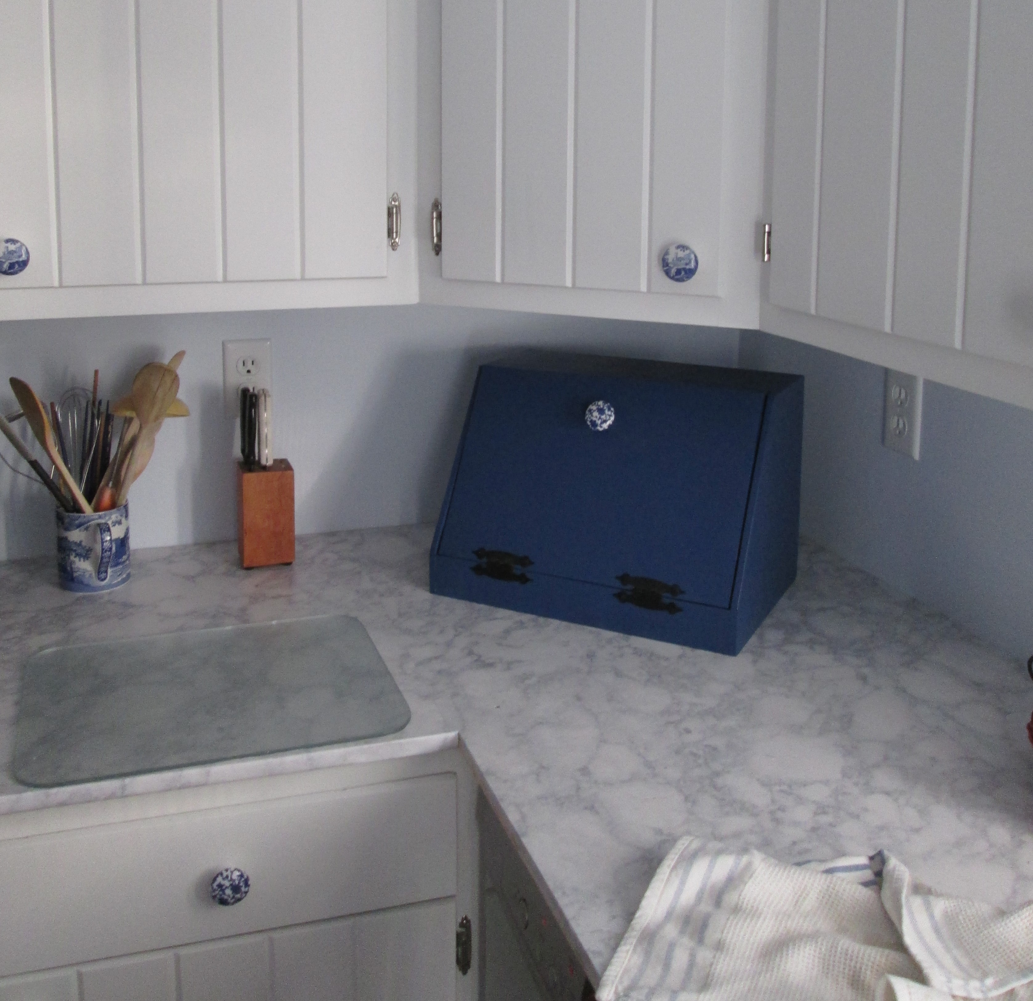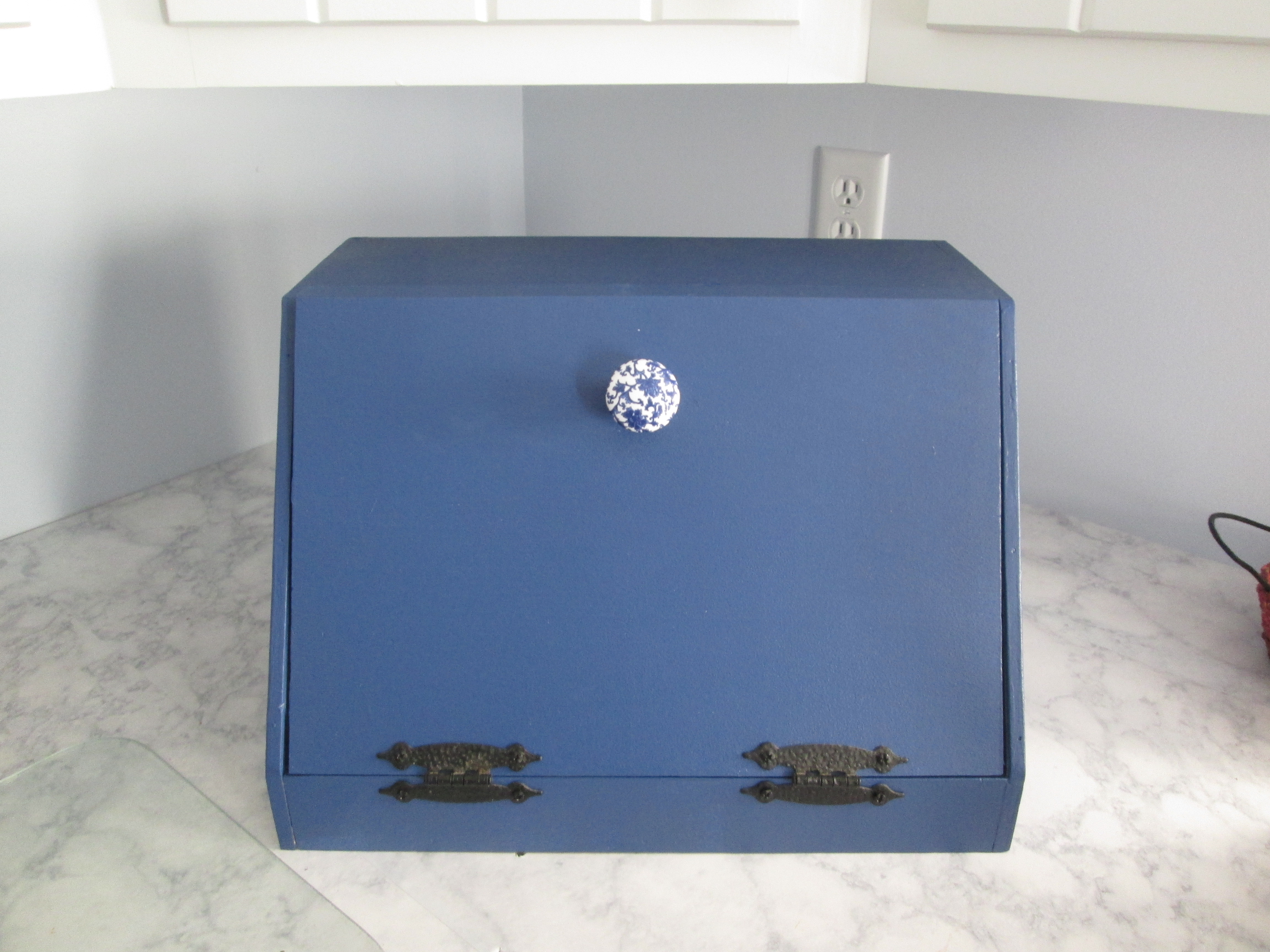 I had a pleasant, quiet week, and we even made a little progress in the kitchen. The stove is now in the right place and we can use the dishwasher! Counters are finally on (re)order and should be here in a couple of weeks. My do-it-yourself job was to paint the breadbox that son #2 made for me some years ago. Voilà!
