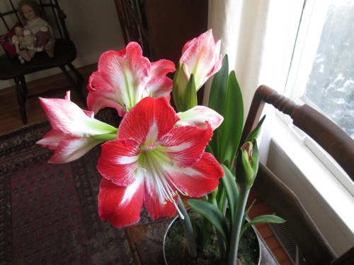 Meanwhile, in my small corner of the North Country, the ground is still frozen but the amaryllis is blooming!