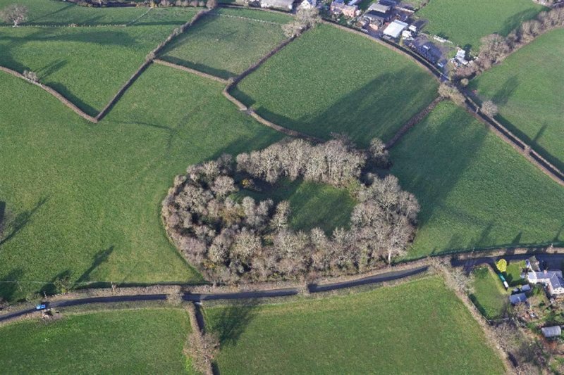 Naturally, this got me reminiscing about my first hedgehog encounter. Back in the summer of 1983 I participated in an archaeological dig at Hen Domen, a Medieval motte and bailey in Wales. Here’s an aerial view of the site: