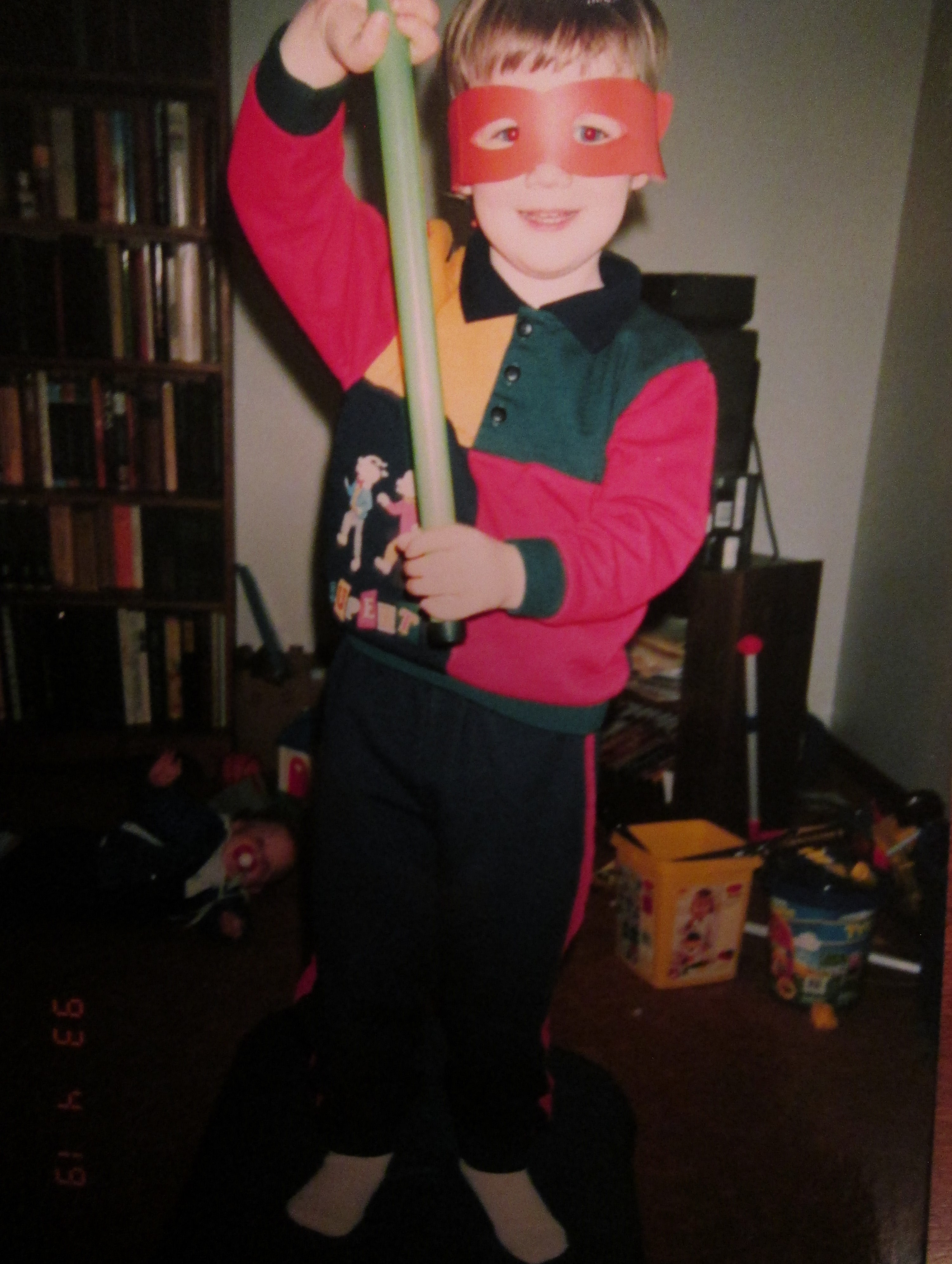 And before we knew it he was a Ninja Turtle saving the world — or his baby brother. Can you spot the little guy waving in the background of this photo?