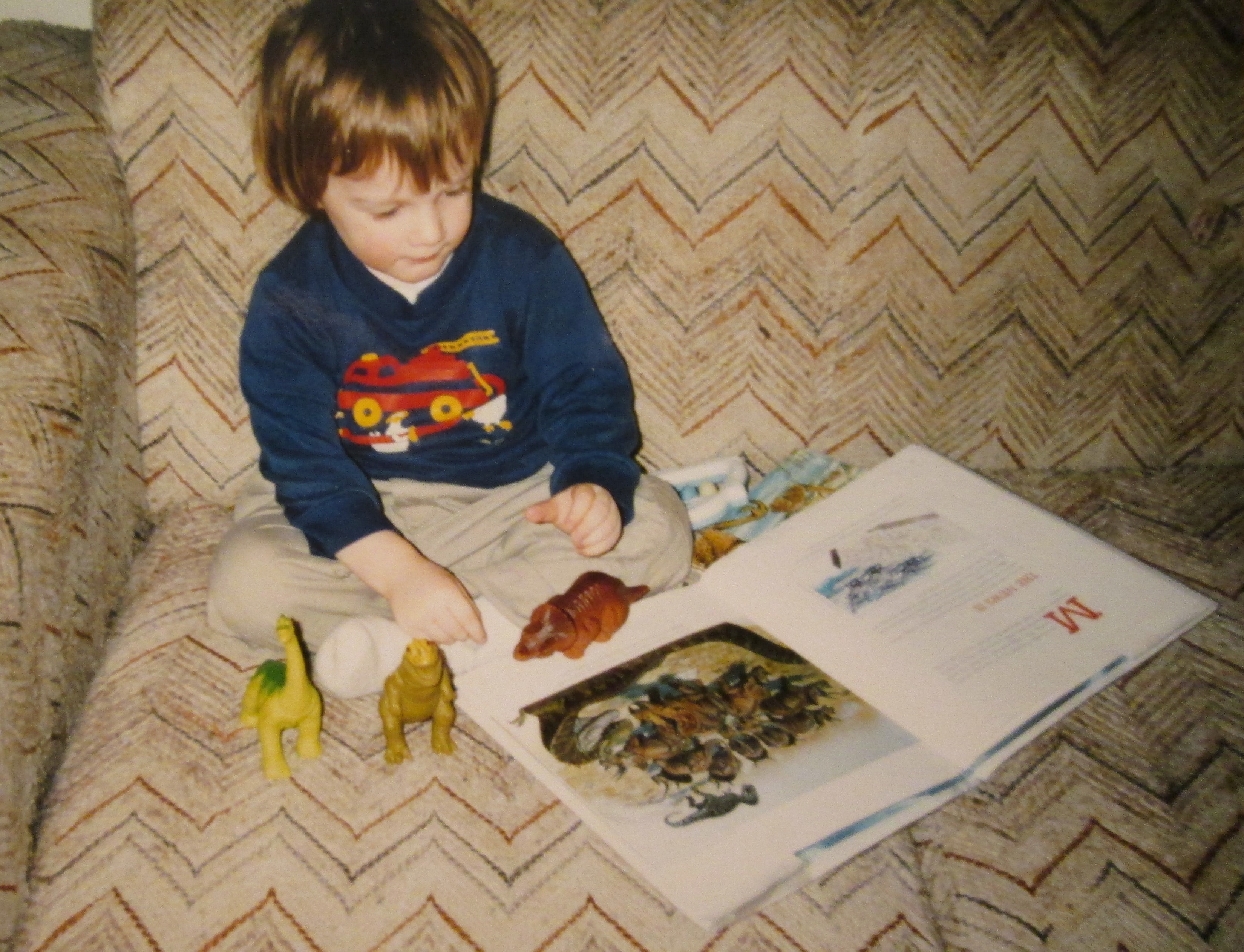 Pretty soon he began to act out stories with his dinosaurs (on the charming couch that came with the house we rented),