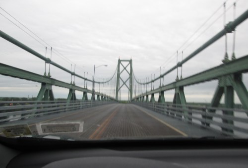 The return drive was uneventful, but it sure was hard to keep my little eyes open. I managed to take a couple of photos while crossing the bridge over the St. Lawrence (don’t worry the speed limit is 25). The bridge is big — about two miles long and very high — and driving over it gives me the heebie-jeebies.