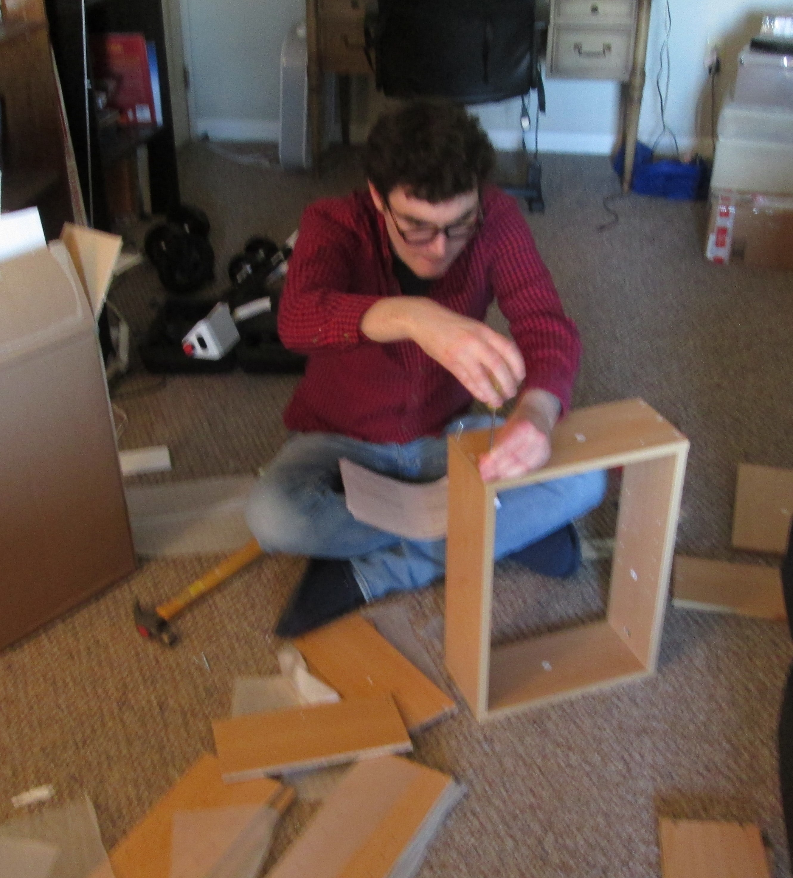 and then went back to his apartment to open presents and provide moral support (i.e. watch) while he assembled new DVD storage shelves.