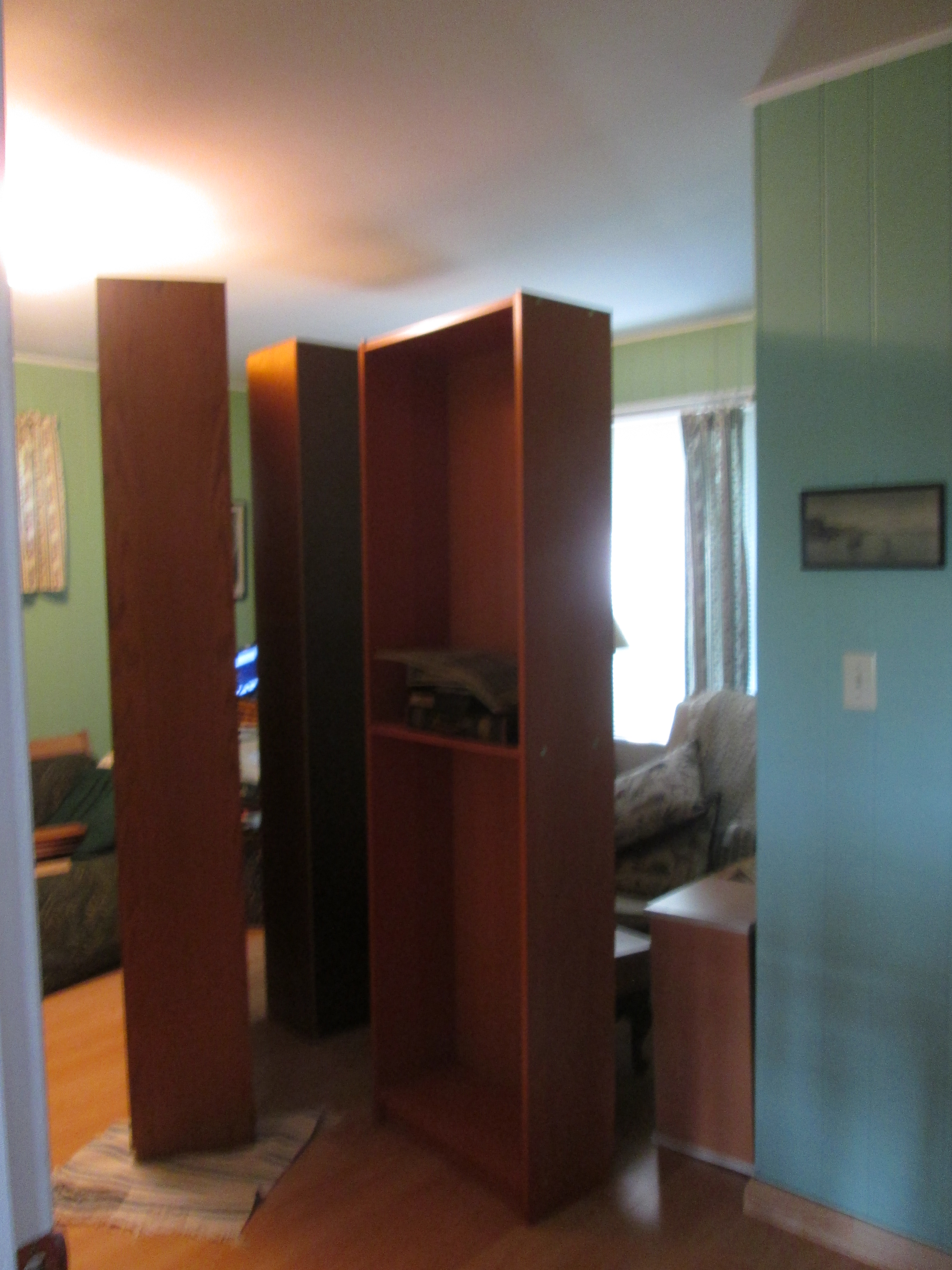 Since, as my mother used to say, “there are only so many hours in a day and so many minutes in an hour, and I tend to get tired,” it was a multi-day process that involved much bending, stretching, bruising and — dare I say it — swearing.Β But the results were quite satisfactory. We gained so much shelf space that I have room to grow!