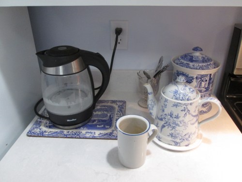 We store our tea in the Spode cookie jar at the back of the photo. I’ve broken and repaired it twice.