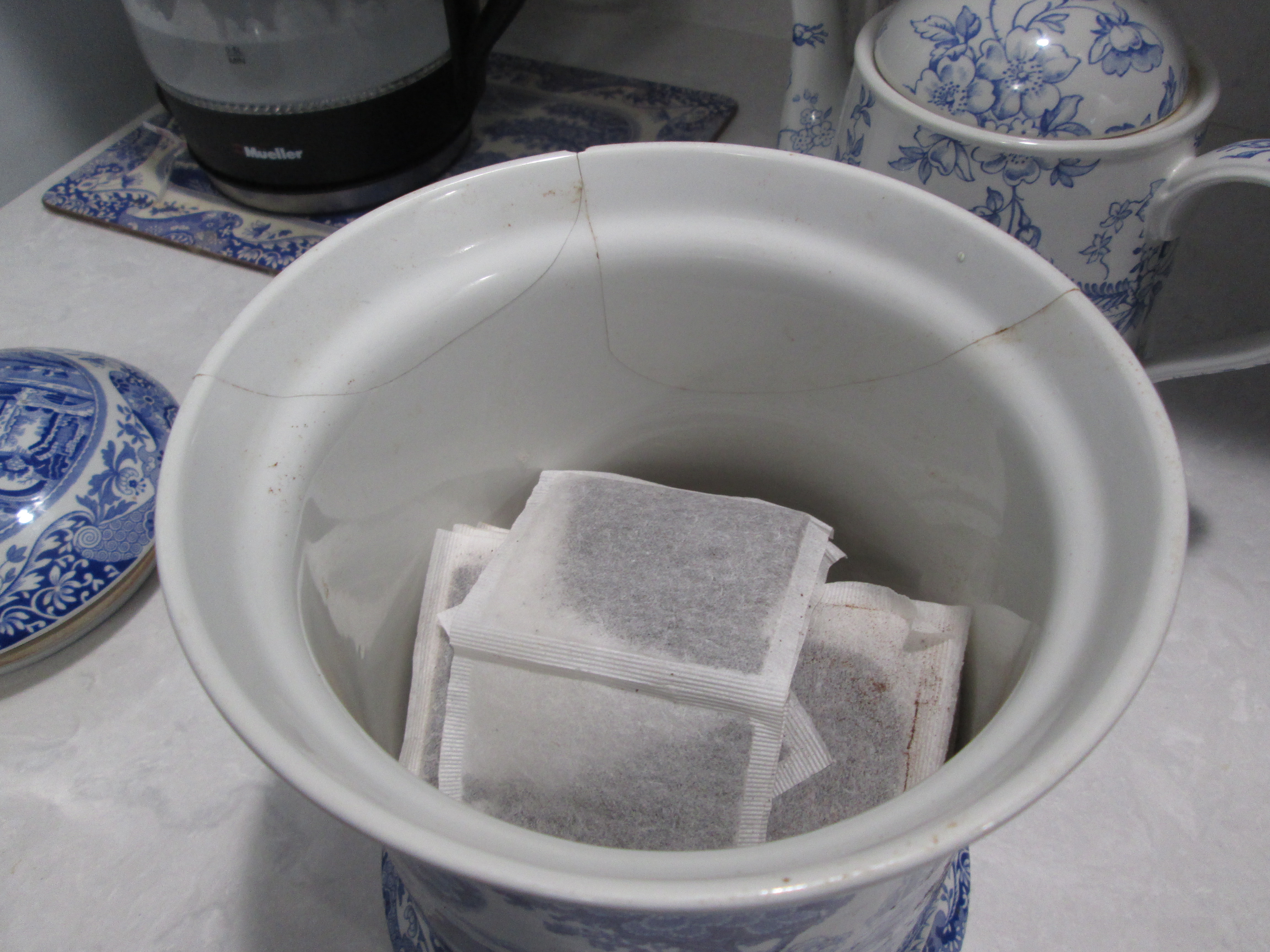 We store our tea in the Spode cookie jar at the back of the photo. I’ve broken and repaired it twice.