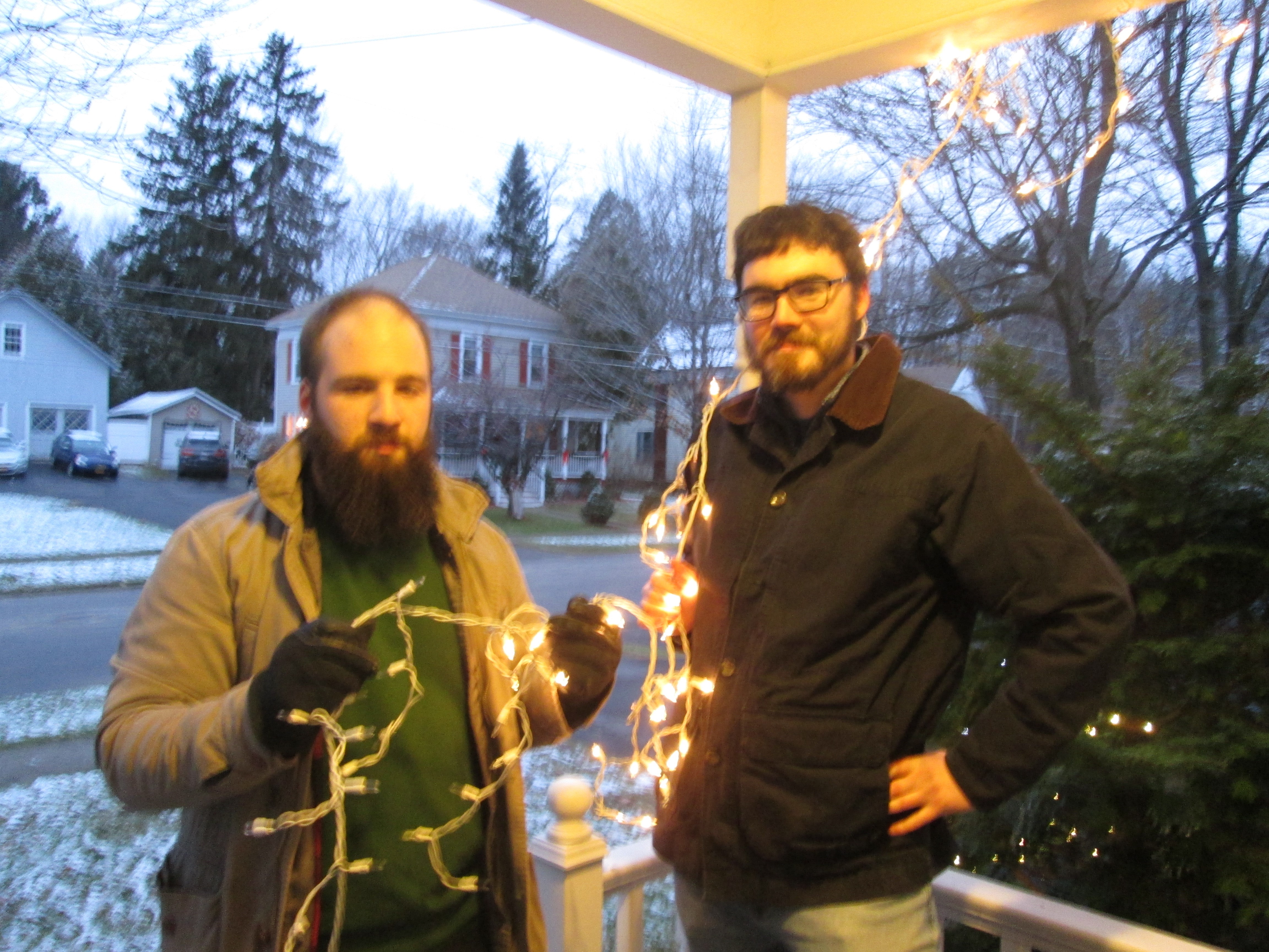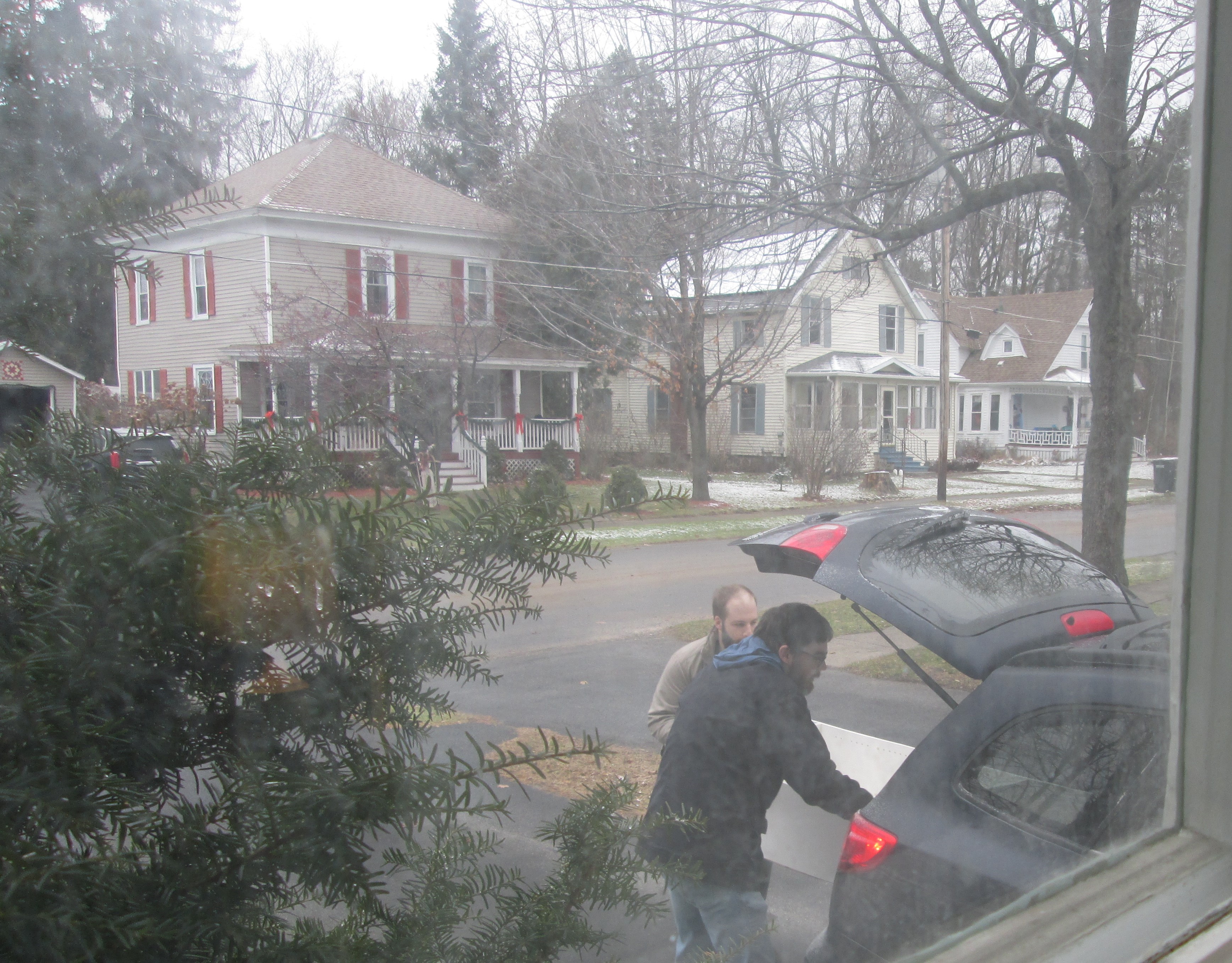 Although my sons could only stay a few hours, they put up the Christmas lights, went through some of their ‘stuff’, and moved heavy items for us. Now that the DH and I are “old and infirm”, we appreciate all the help we can get!.