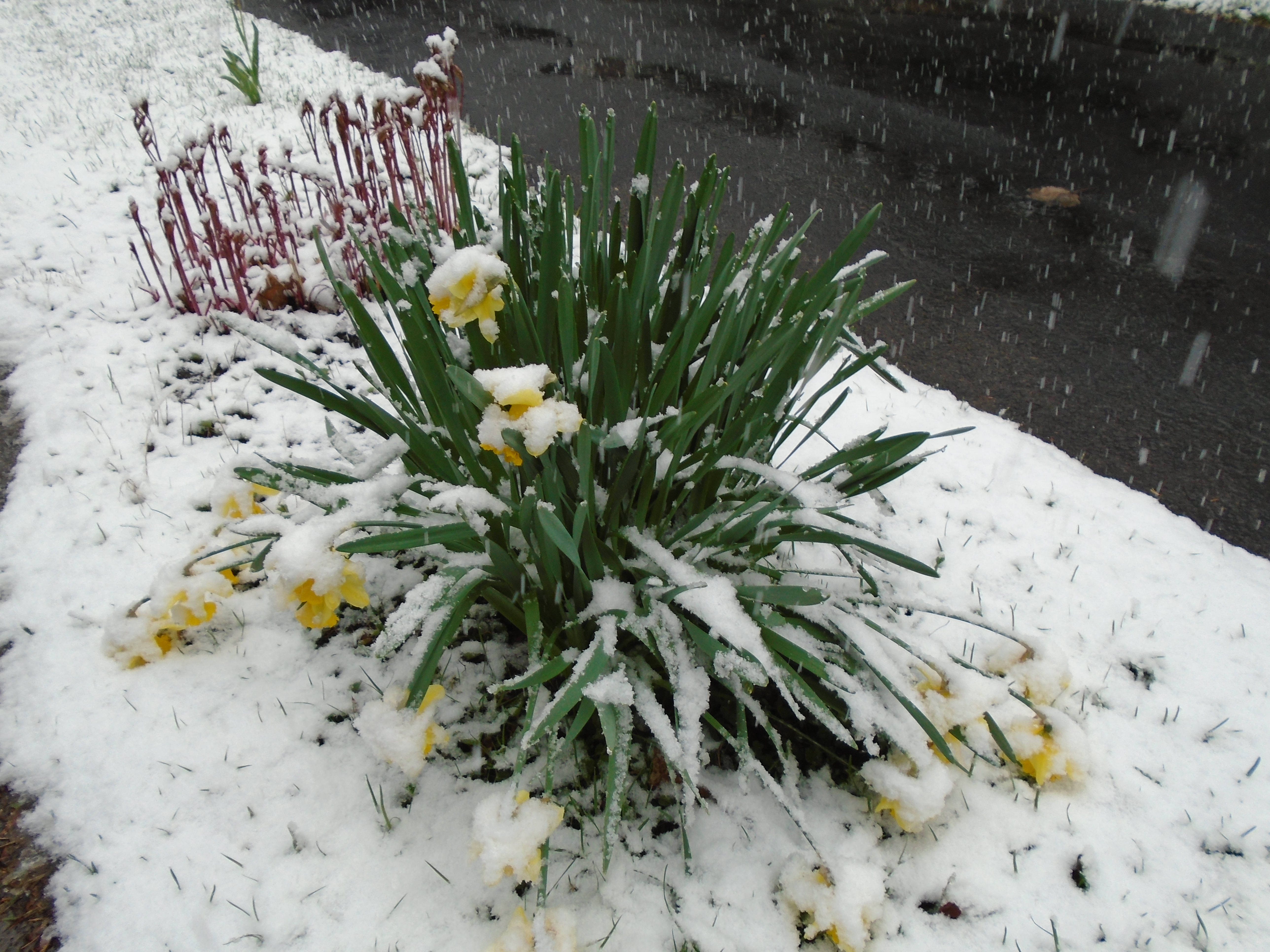 Another week has flown by and we all feel as beleaguered as the poor daffodils and just-sprouting peonies in this photo:
