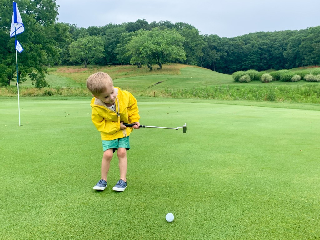 The night before the wee laddie had spent many hours in the ER after he swallowed a penny. (The text messages were flying.) They had to anesthetize him to take the penny out. It was his second x-ray in two days (see Friday’s post.) He is on a roll, but doesn’t appear to be any the worse for wear. Did I mention that he played his first round of golf?
