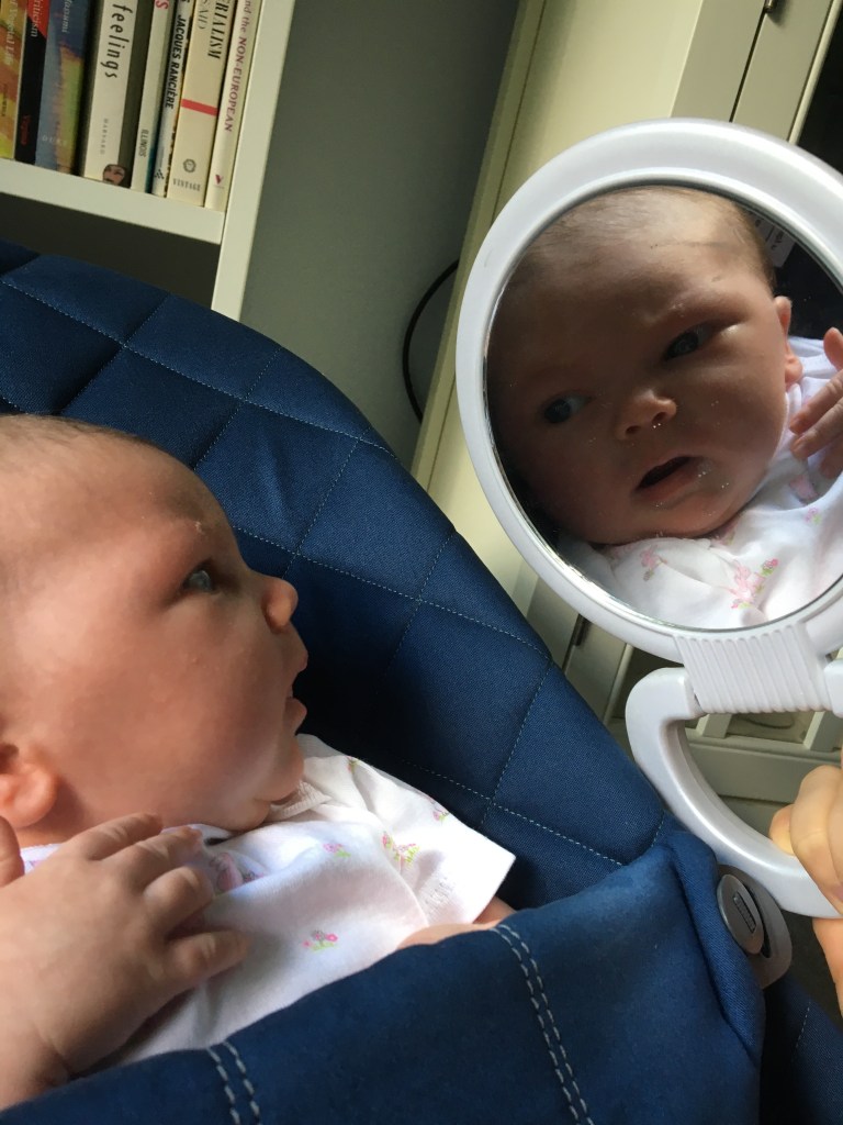 Did you know that technically an infant only qualifies as a newborn for 28 days? It seems that more informally, 12 weeks is the newborn window, but our pediatrician congratulated us at our one-month appointment on making it past that mark. Now we officially have a “baby.” Ok then!