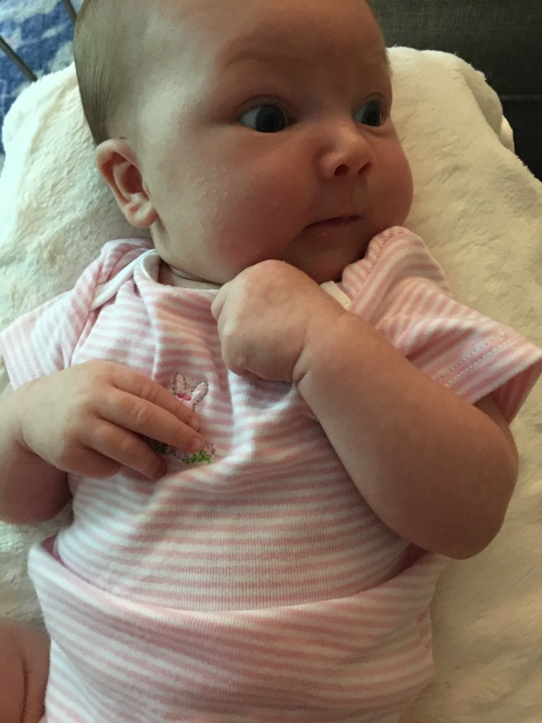 Also, she spent a whole 28 minutes on FaceTime on Monday morning, record-breaking endurance and a real show of strength in “awake time.” Mamu, daughter #1 and I have perfected our “narrating the baby’s thoughts and actions” voices and amuse ourselves immensely. How could we not, with a subject like Katiebelle?