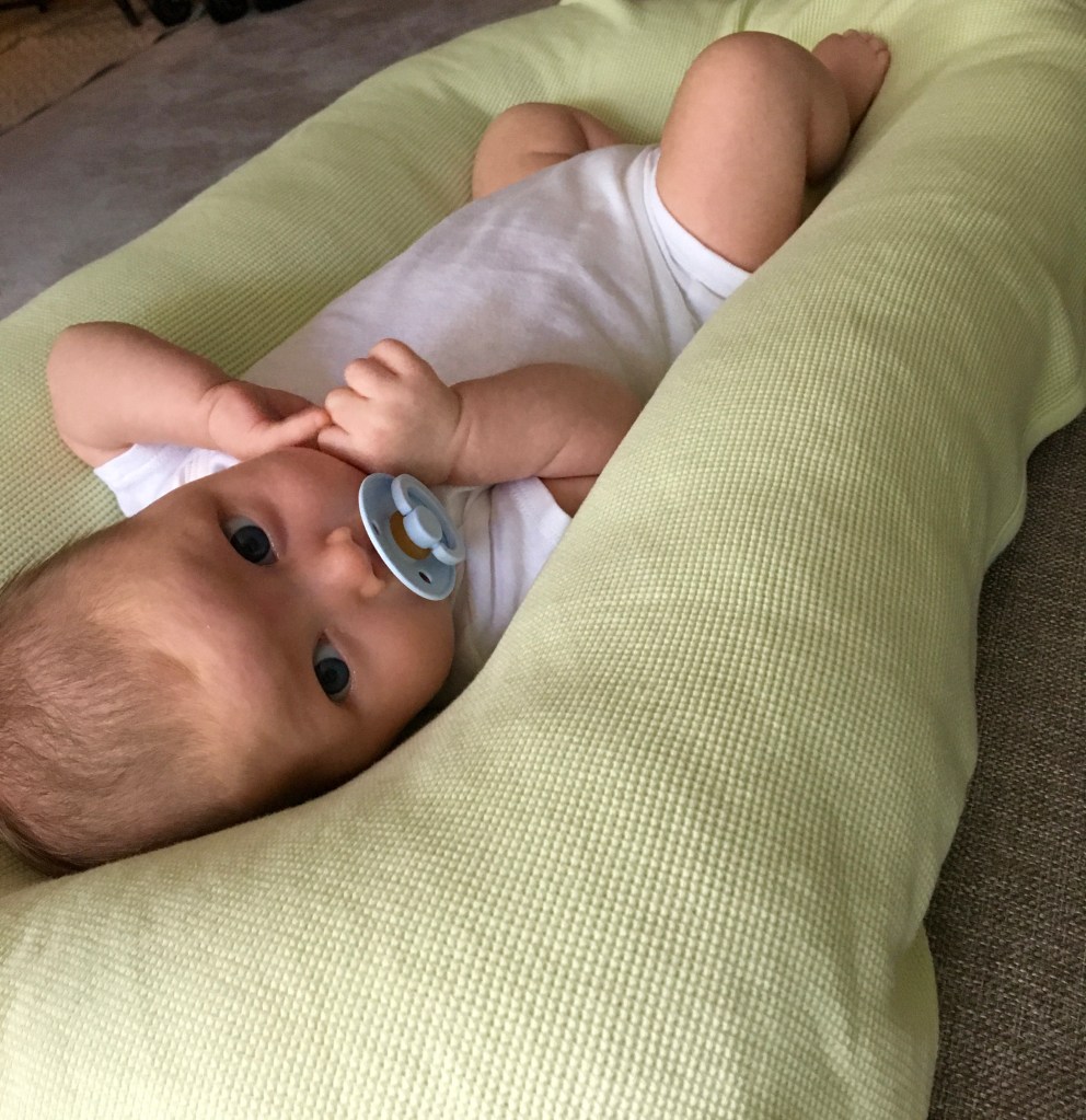 Katie is now 8 weeks old! She is much more engaged with the world, paying more attention to sights and sounds. We know she is a Compton lady because she loves, in particular, to study brown furniture. (The secretary is her number one object of fascination!) While she is a champion sleeper at night, now only needing one feeding between bedtime and morning (!!!), naps are getting harder because she just wants to hang out with her mom. (I don’t blame her.)