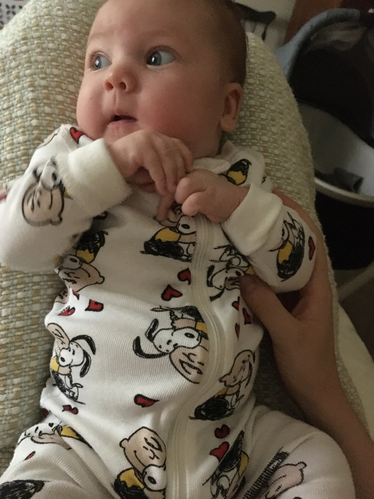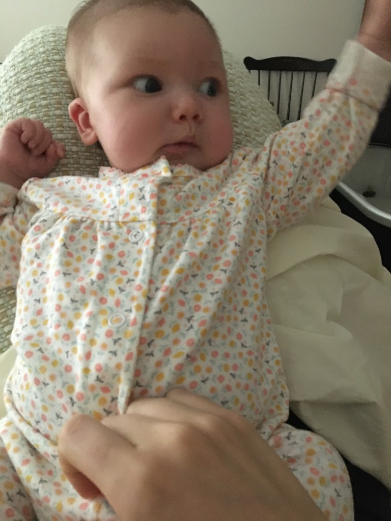 Well, Katiebelle continues to be the sweetest baby alive. When we wake her up in the morning, she just seems so thrilled to be with us. No matter how fussy the day before has been, she wakes up full of smiles. Happiness really is a full tank of gas, and she has been filling up on long nights of sleep and, shall we say, enthusiastic nursing come morning.