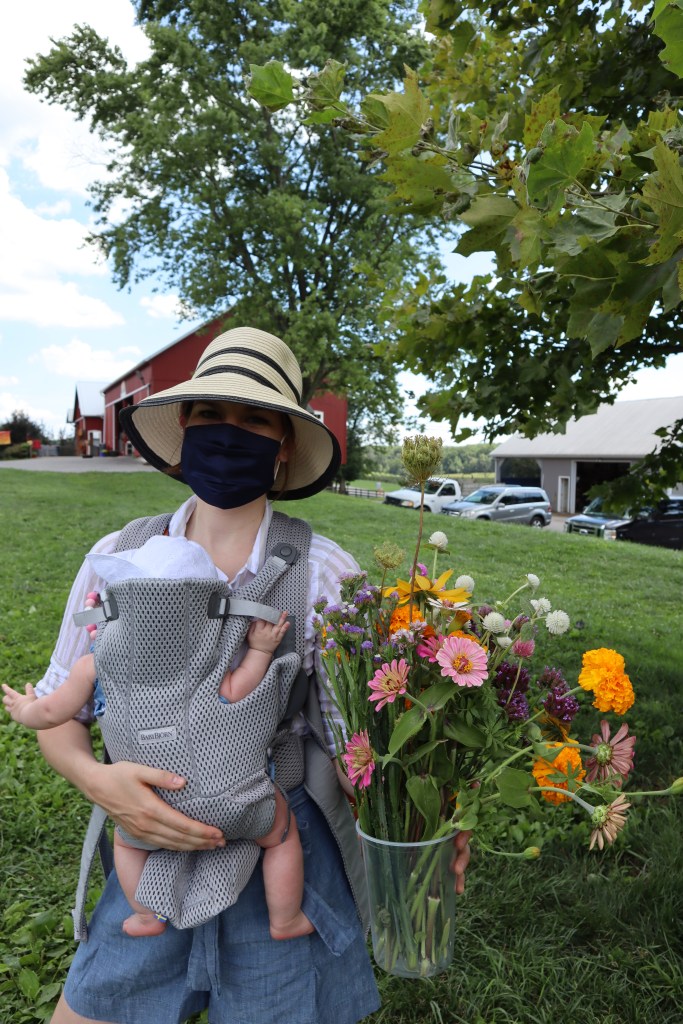 On Tuesday, we planned an outing to a favorite farm of ours, where we have picked apples in the past. We were craving peaches and I liked the idea of picking my own bouquet. Now, this involved at least two hours in the car round trip, nursing in a parking lot, and timing our “wake windows” just right to avoid a baby meltdown — all for about thirty minutes of outdoor activity.