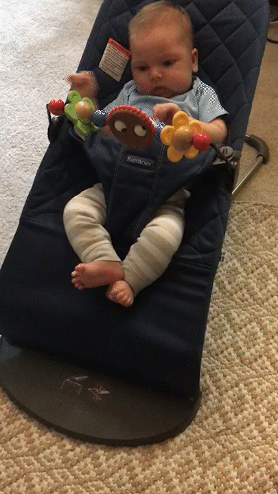 In other news: the darling babe (and her mother) adapted well to nighttime sleep in the nursery as discussed last week. Here she is waking up one morning, thrilled to tackle the day: